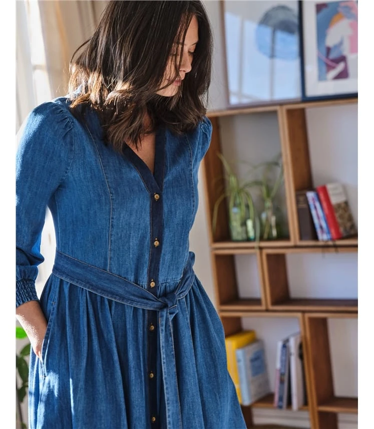 Cette magnifique robe à la coupe décontractée est fabriquée en chambray, qui a l’attrait classique du denim, mais avec un toucher plus léger et plus doux. Votre tenue ultime pour tout faire et aller partout