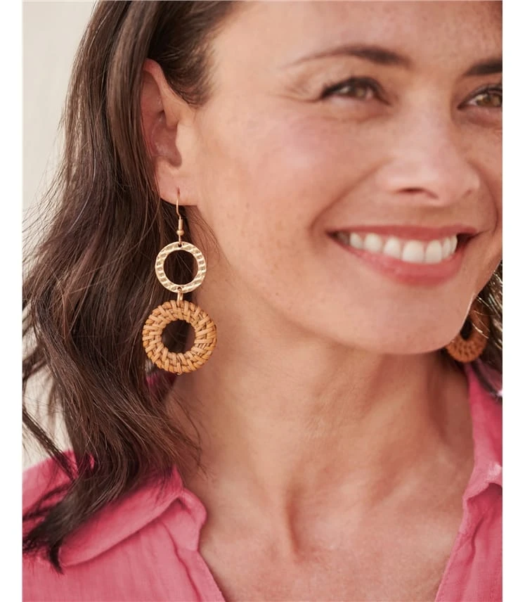 Naturelles et magnifiques, ajoutez la touche finale à votre tenue avec ces magnifiques boucles d’oreilles en disque de rotin.