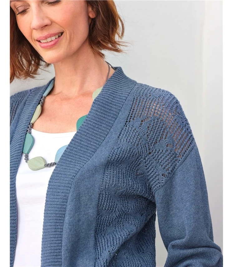 Ce joli cardigan est doté d’empiècements en pointelle qui le distinguent pour toutes les bonnes raisons. Cela amène vraiment la belle texture unique aux tricots à un autre niveau. Avec une coupe bord à bord flatteuse, c’est la couche parfaite à enfiler sur tout, d’une chemise à une robe d’été. Fabriqué à partir de coton doux et doux pour votre peau.