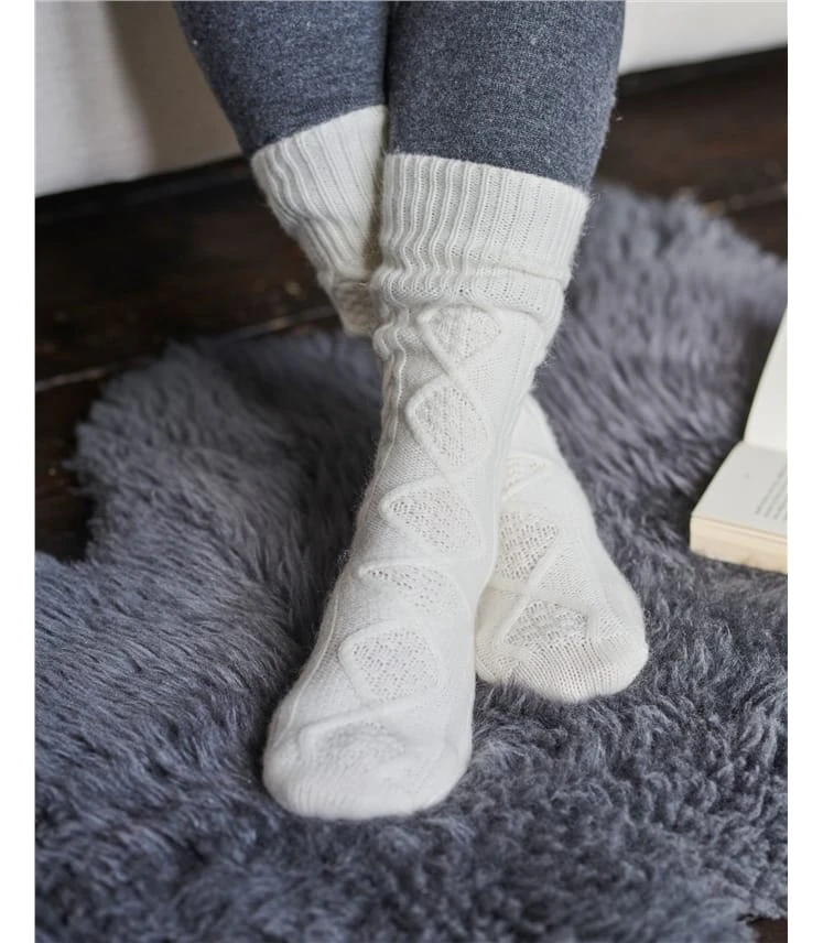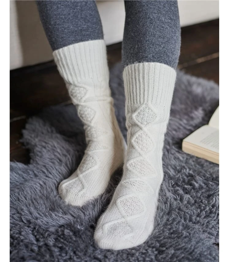 Idéales pour tenir vos pieds bien au chaud dès l’arrivée de l’hiver, nos nouvelles chaussettes en 100% laine d’agneau de première qualité sont très confortables et douillettes. Arborant une maille torsadé dans la pure tradition irlandaise, elles sont d’une belle longueur avec un revers côtelé. Vous pourrez ainsi les porter bien hautes à l’intérieur de bottes ou plissées en accordéon pour vous prélasser à la maison. Profitez au maximum de leurs propriétés thermiques naturelles et/ou faites plaisir à l’un de vos proches, il vous en remerciera !