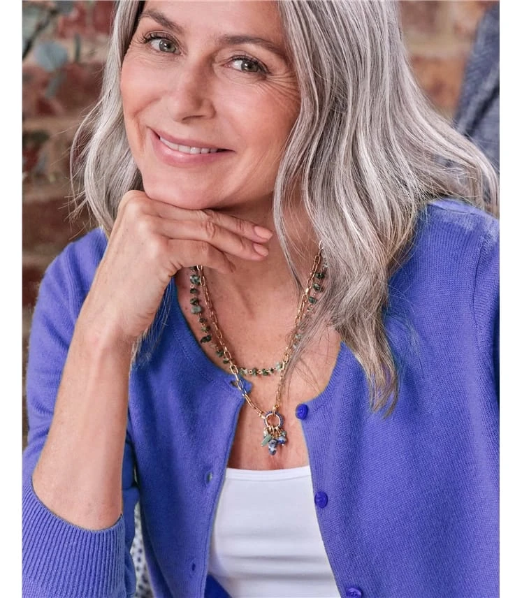 Ajoutez une magnifique touche finale à votre look avec ce collier à plusieurs rangs. Il présente des pierres gemmes semi-précieuses dont les couleurs lumineuses sont si belles à la lumière naturelle.