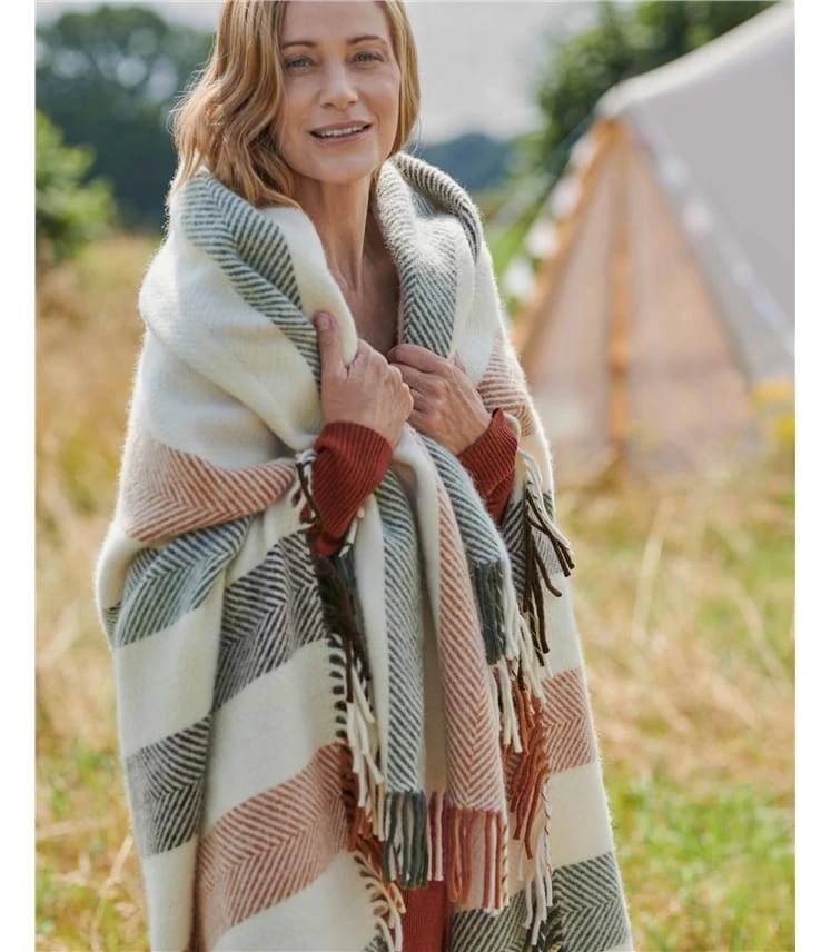 Nouveautés WoolOvers, cette couverture en 100% Pure Laine est le produit phare de la nouvelle saison. On aime son motif chevron et sa finition frangée. Elle peut se porter sur les genoux, les épaules pour se couvrir lors des soirées fraîches ou peut être posée sur le canapé et décorer le salon pour une ambiance cocooning.
