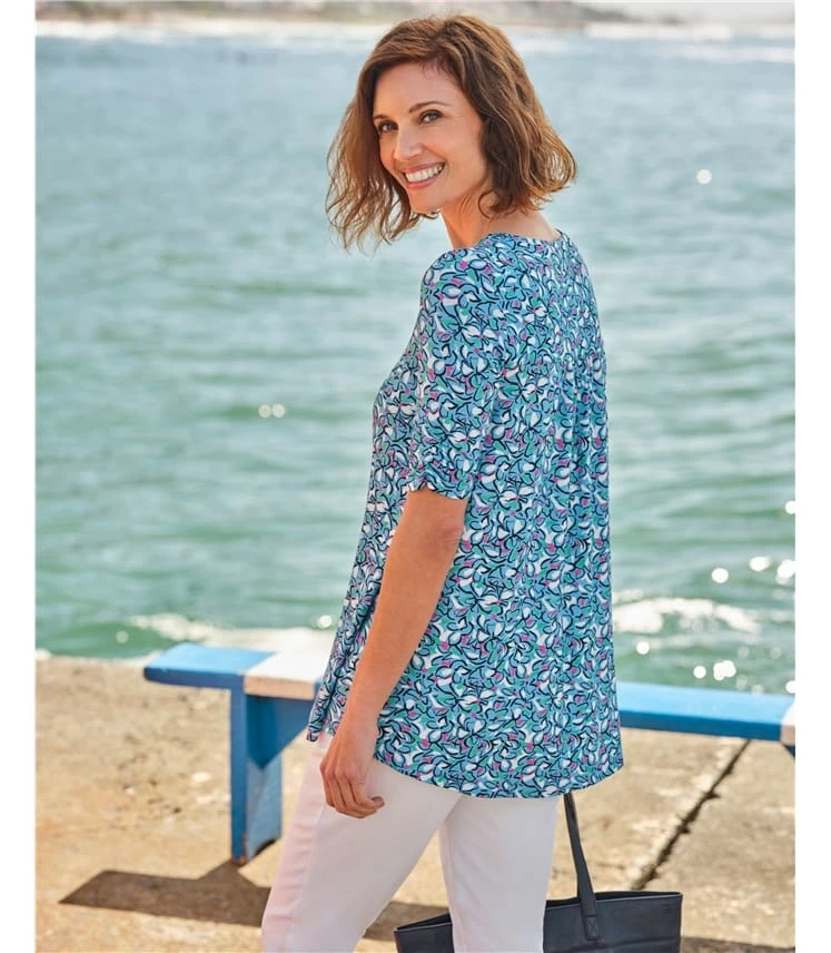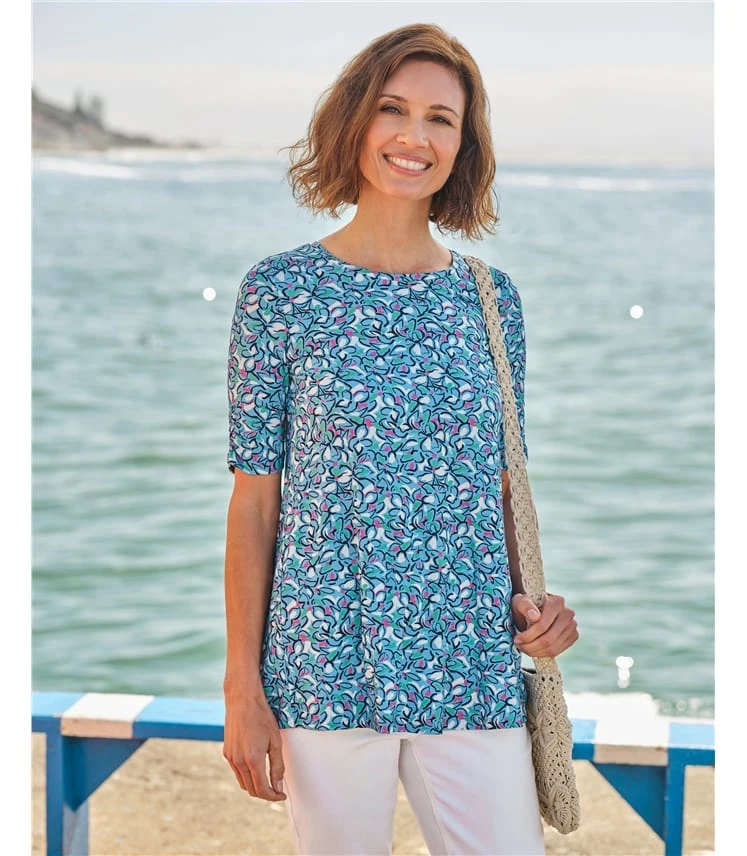 Décontracté et décontracté, mais tellement élégant, ce haut à manches courtes est exactement ce qu’il vous faut. L’imprimé aux couleurs vives ajoute du peps à votre journée, avec un ourlet a-line flatteur. Fabriqué en viscose, il est doux et confortable sur la pea