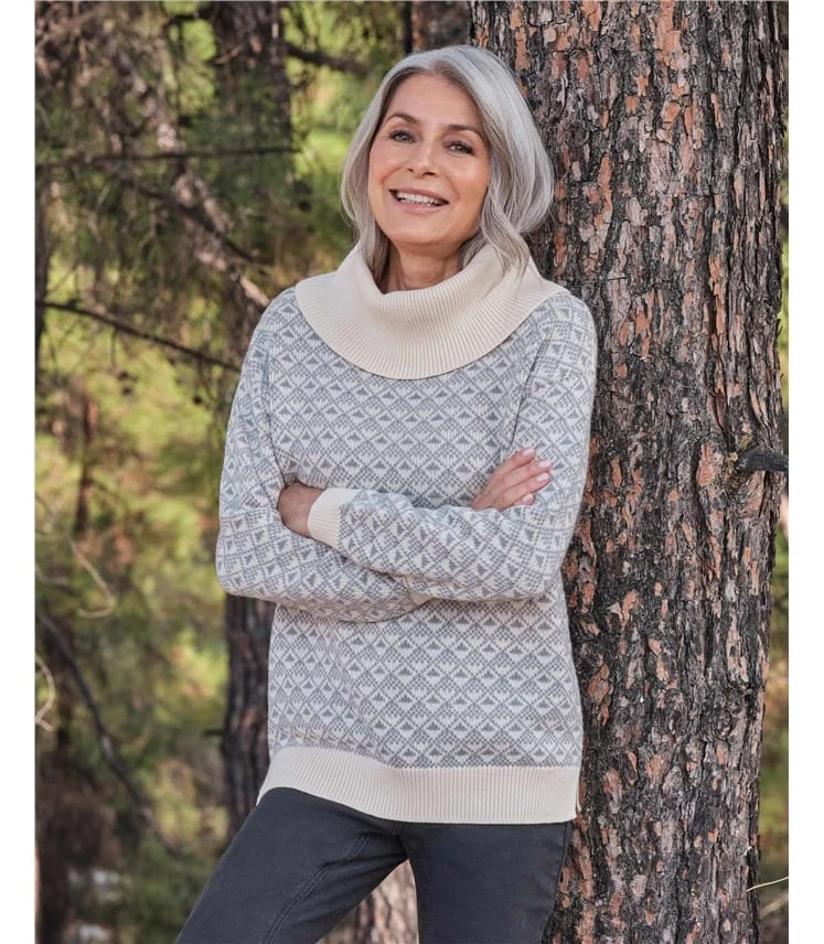 Agréable à l’œil, un motif intégral ajoute de la texture à votre tenue. Ce motif géométrique de diamants n’est pas si typique, se démarquant par sa nature stylée. Avec des ourlets côtelés et un élégant col cheminée, ce pull vous gardera au chaud et cosy lorsqu’il fait froid.
