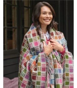 Couverture Réversible Motif Hiboux – Maison – Laine Mélangée