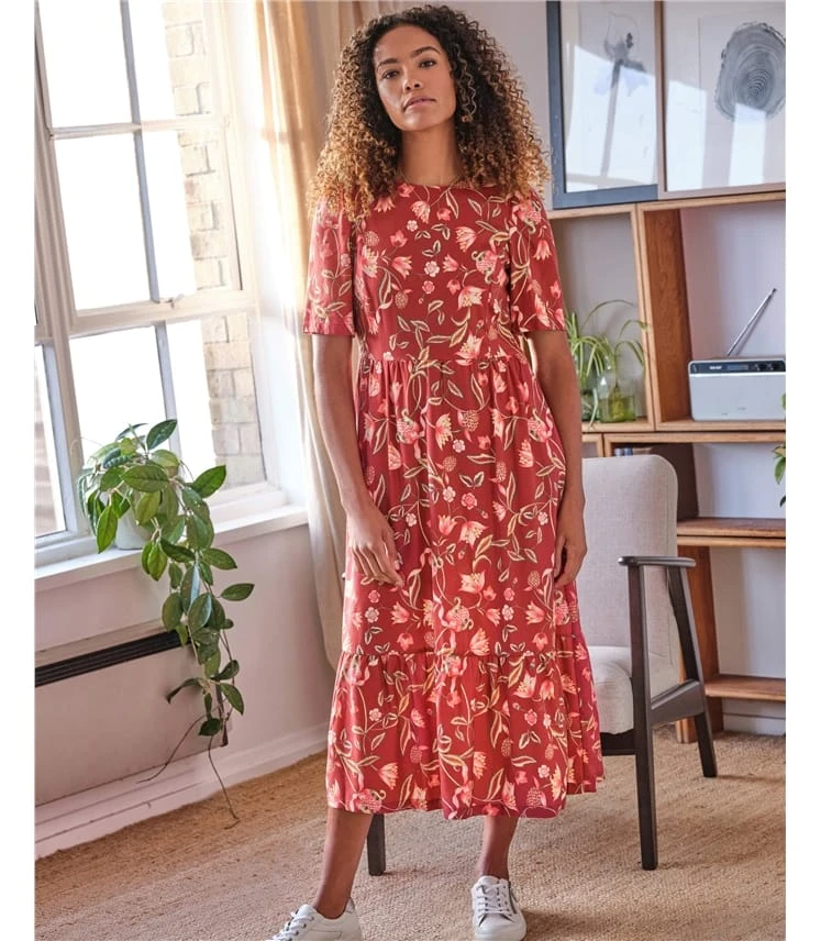 Adorned with an exclusive Thought print featuring gorgeous golds and rich reds, it allows you to embrace a carefree and stylish look