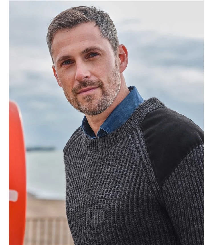 Pull à empiècements en cuir suédé lavables sur les épaules et les coudes