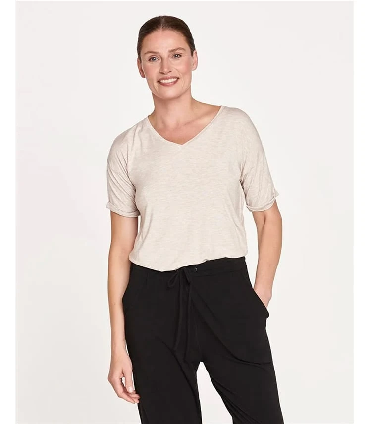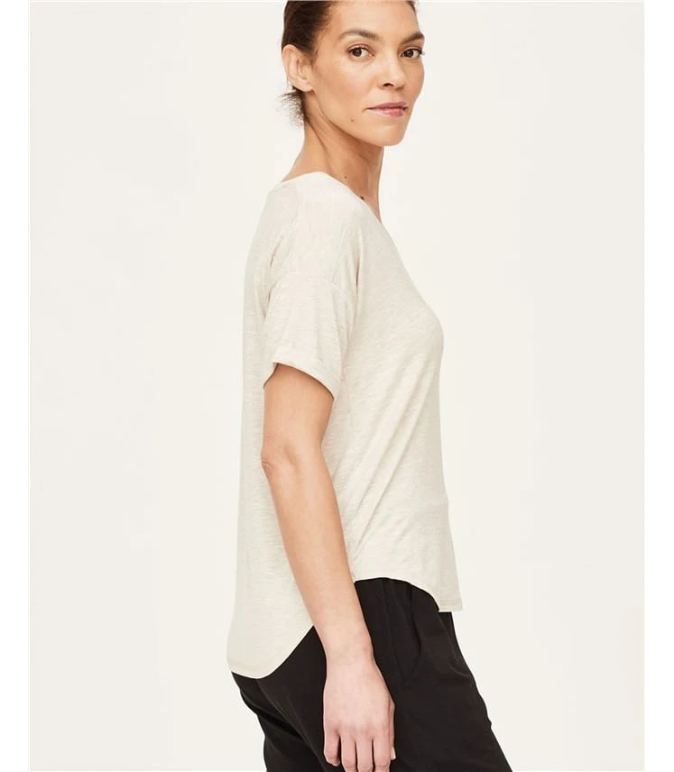 Un T-shirt d’été facile à porter. Les épaules tombantes et le tissu doux créent une coupe flatteuse qui convient à toutes les formes. De nos amis de Thought.
